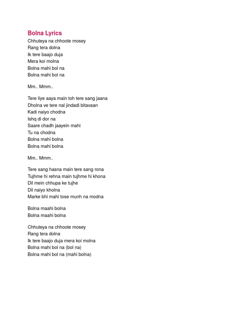 Bolna Mahi Bolna Lyrics In Hindi - Bolna mahi bolna by arijit.