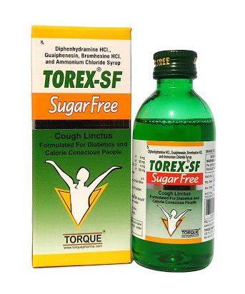 Torex Cough Syrup / Torex cough syrup mainly used as a cough reliever and it actively contains diphenhydramine hydrochloride, terpine hydrate, ammonium chloride, sodium citrate and menthol.